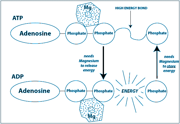 Magnesium is a nutrient required in over 300 enzymatic processes including energy production (ATP). But what most people don’t know is that magnesium is also needed for the storage and utilisation of that energy (see Figure 1).